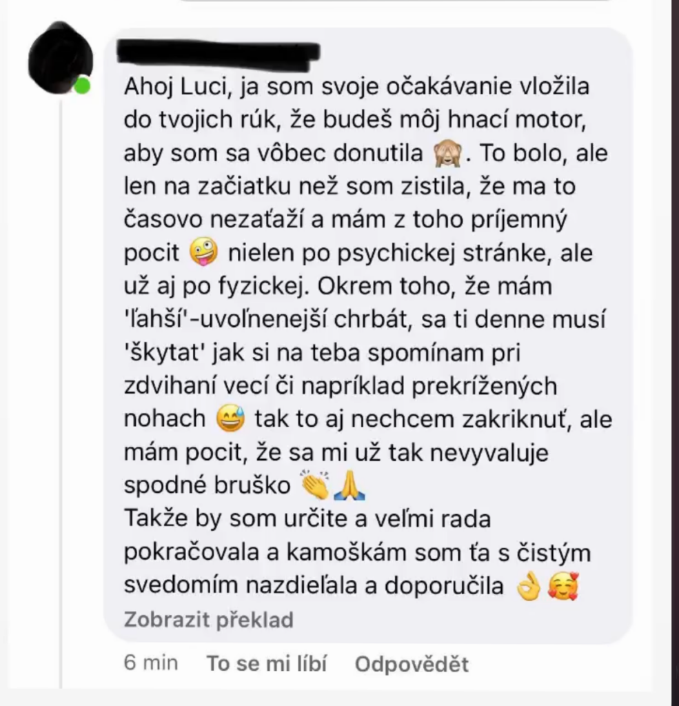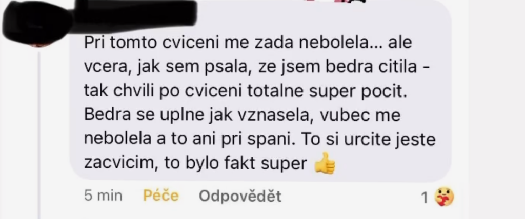 Ty tvoje neviditelné cviky jsou fakt výzva. Nebudu lhát, nebaví mě to ani trošku. Mám ráda makačku a když cítím svaly. Dala jsem tomu ale šanci a po dvou týdnech cítím první změny. Cvičím 2x denně maximálně 10 minut, ale konečně se v noci vyspím, záda téměř nebolí a neměla jsem od té doby migrénu."